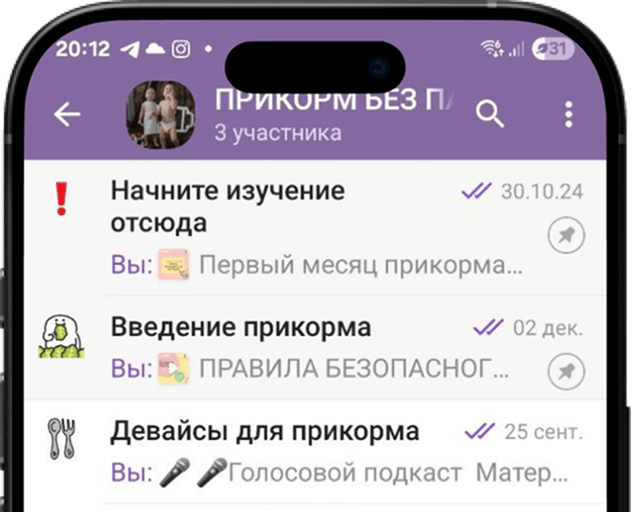 Закрытая Telegram-группа, где собрано всё, что нужно для уверенного старта прикорма: